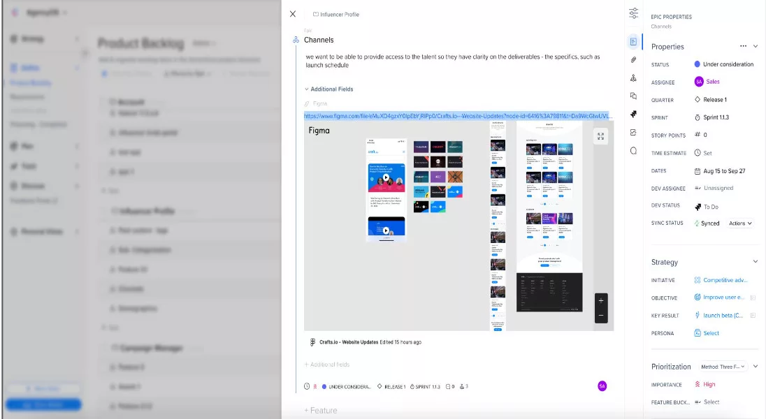 As the industry’s favorite end-to-end platform for product organizations, we have been listening to our business customers around the world adding more ways for product teams to benefit from our platform. For example, we recently released integrations for Figma, InVision, and Adobe XD, to allow product designers to embed their wireframes and journey maps right into the relevant items in craft.io for their product management coworkers to review.