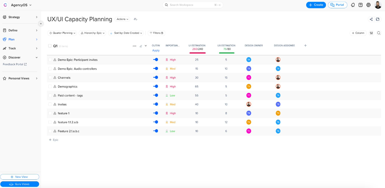 Your UX/UI teams can use craft.io’s capacity planning engine to plan releases, allocate resources, and monitor the current and anticipated future availability of various teams. craft.io’s capacity planning even lets you calculate the effect of adjusting priorities and reallocating resources from one release to another