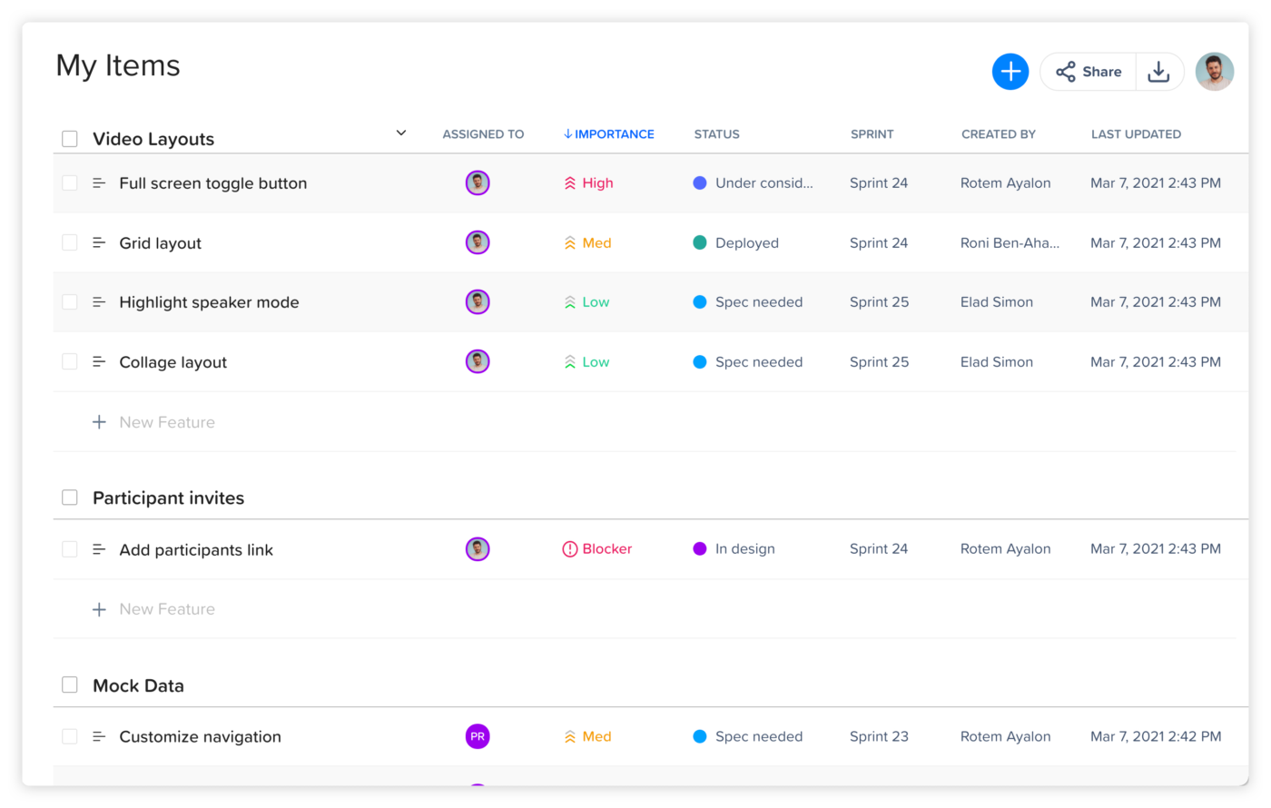 The My Items View makes it easy for you to understand exactly what it is you have on your plate by centralizing and visualizing all of your tasks in one table. Take in the status and the timing of each of your items so that you know where it stands and when you need to start working on it.